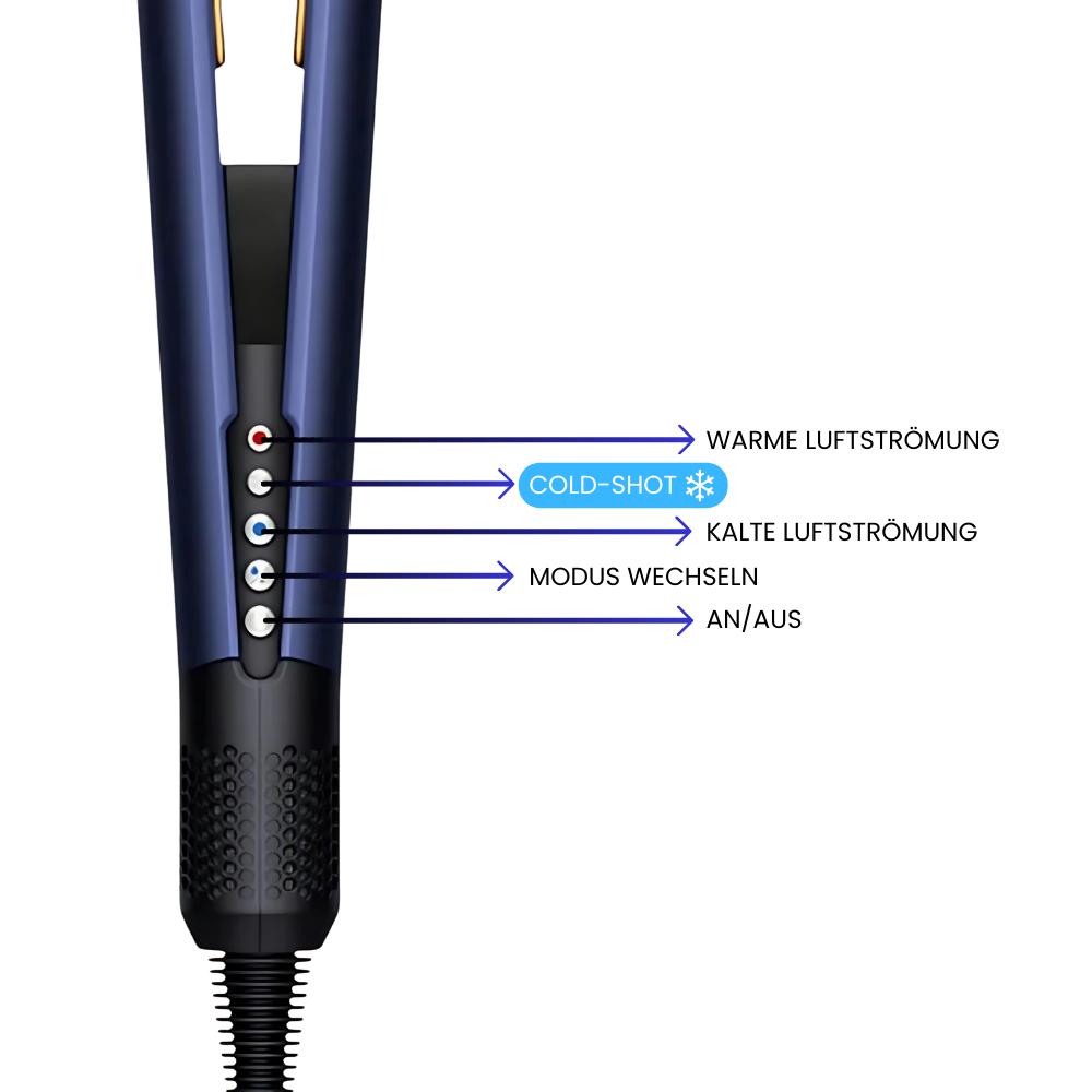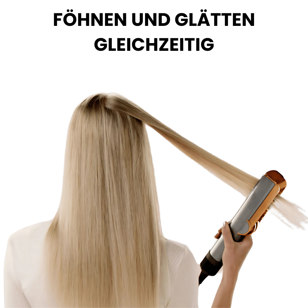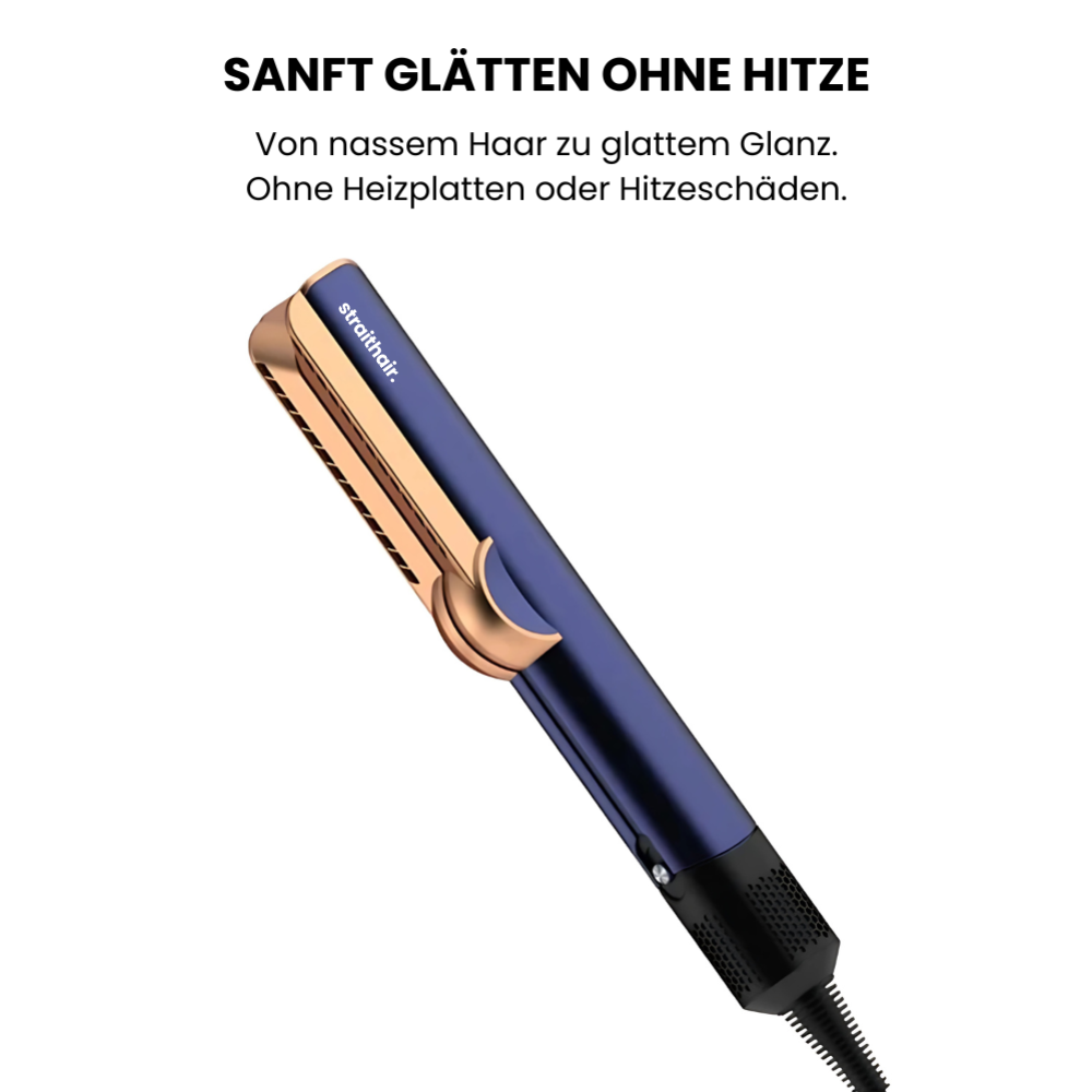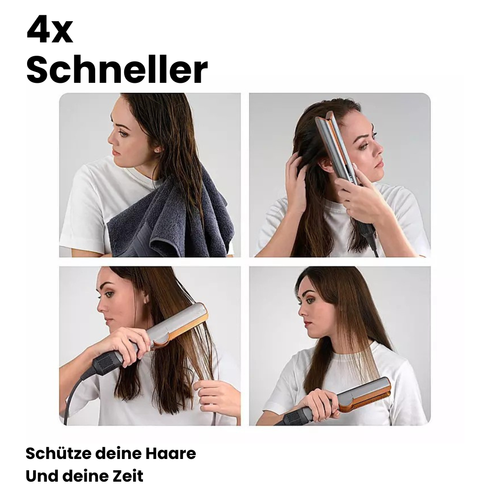 Der Straithair nutzt keinen Hitzekontakt, sondern einen starken Luftstrom, der dein Haar gleichzeitig trocknet und glättet. Dank modernster Technologie mit präzisen Luftdüsen und einem kraftvollen Motor, kannst du dein Haar schnell und schonend stylen, ohne es zu schädigen.