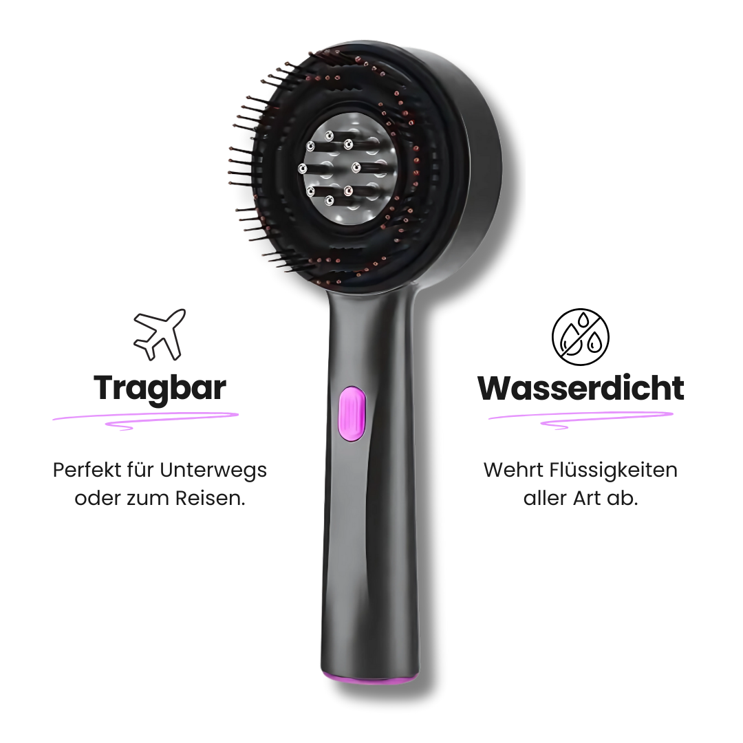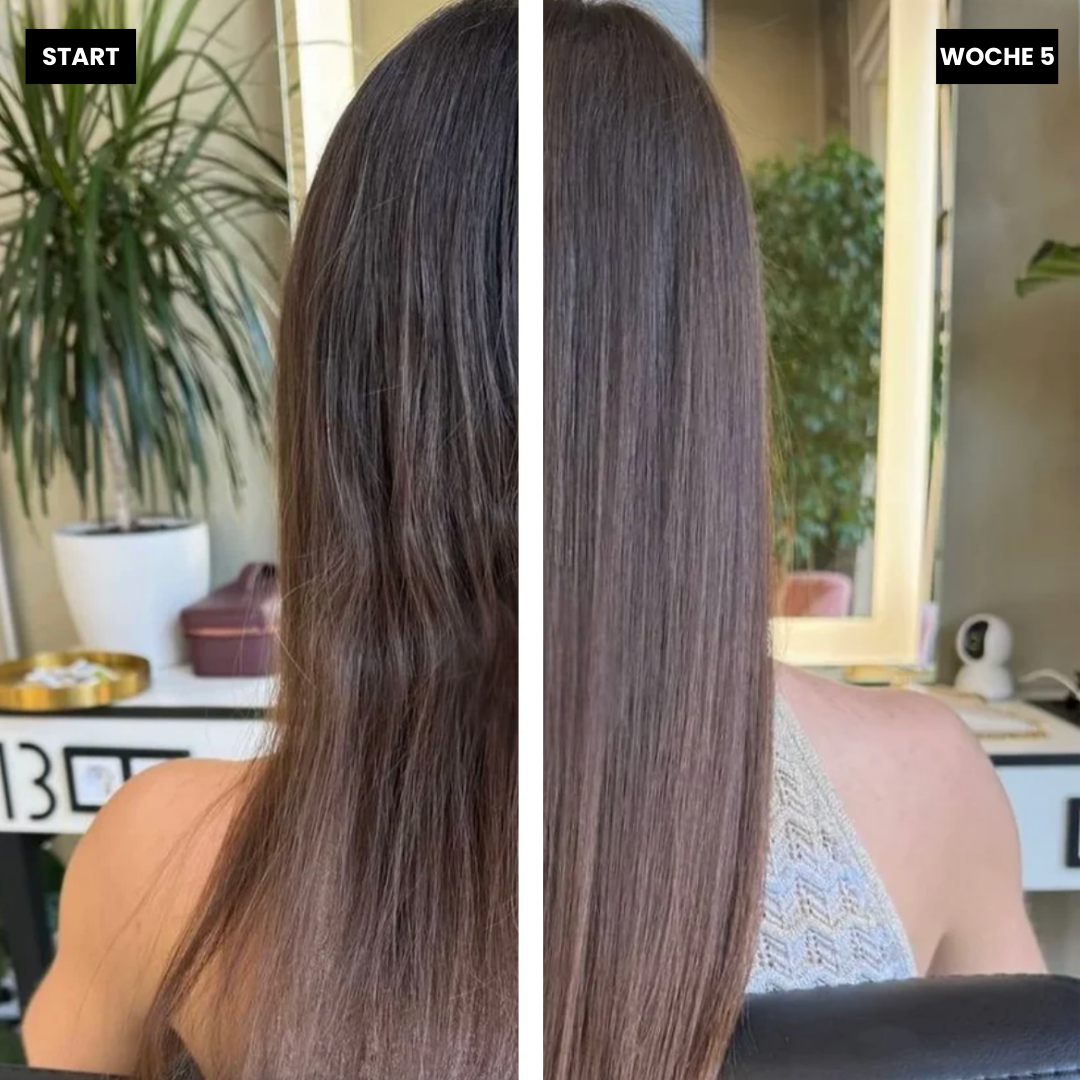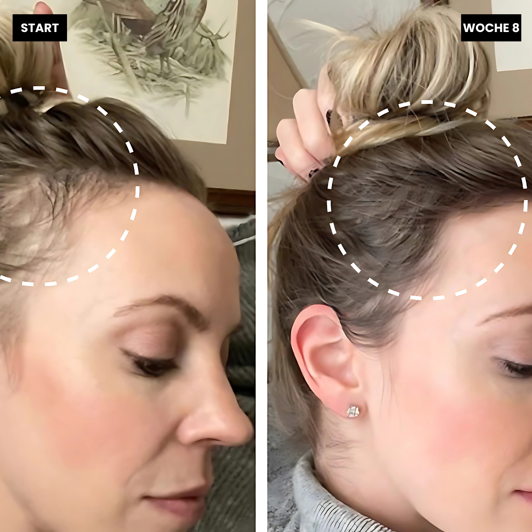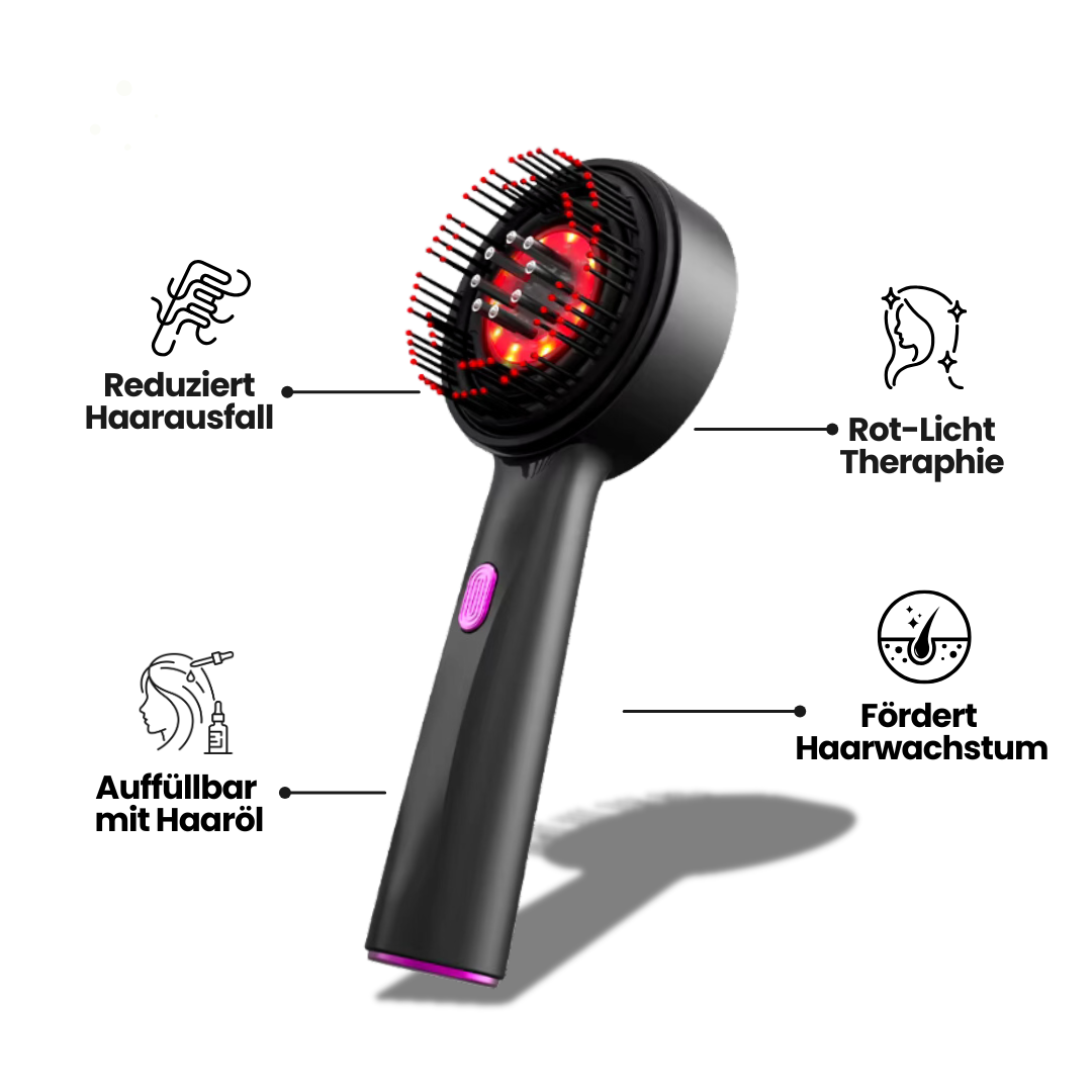 Die Rotlichttherapie regt die Blutzirkulation der Kopfhaut an, wodurch mehr Sauerstoff und Nährstoffe zu den Haarfollikeln gelangen. Dies unterstützt das Haarwachstum und führt zu kräfitgerem und vollerem Haar.